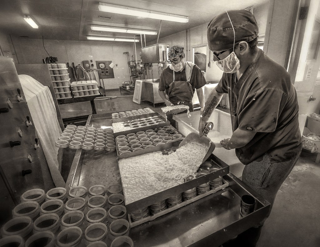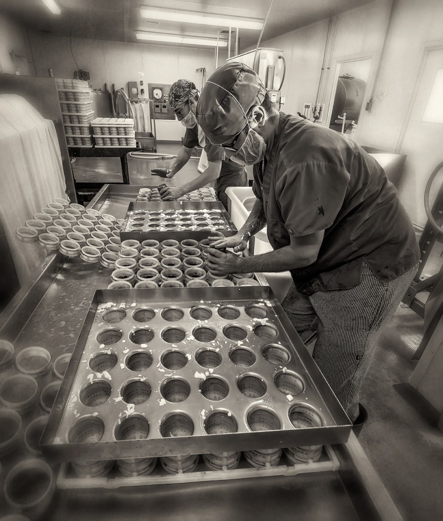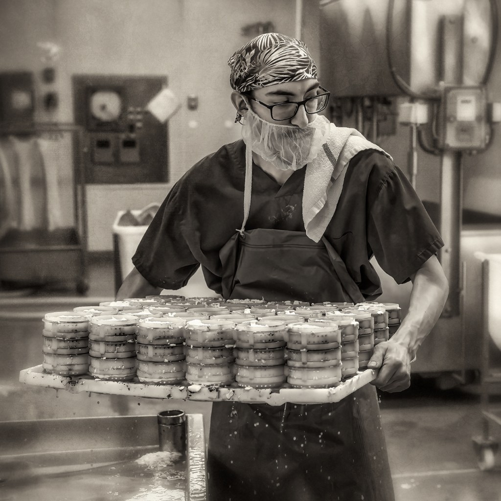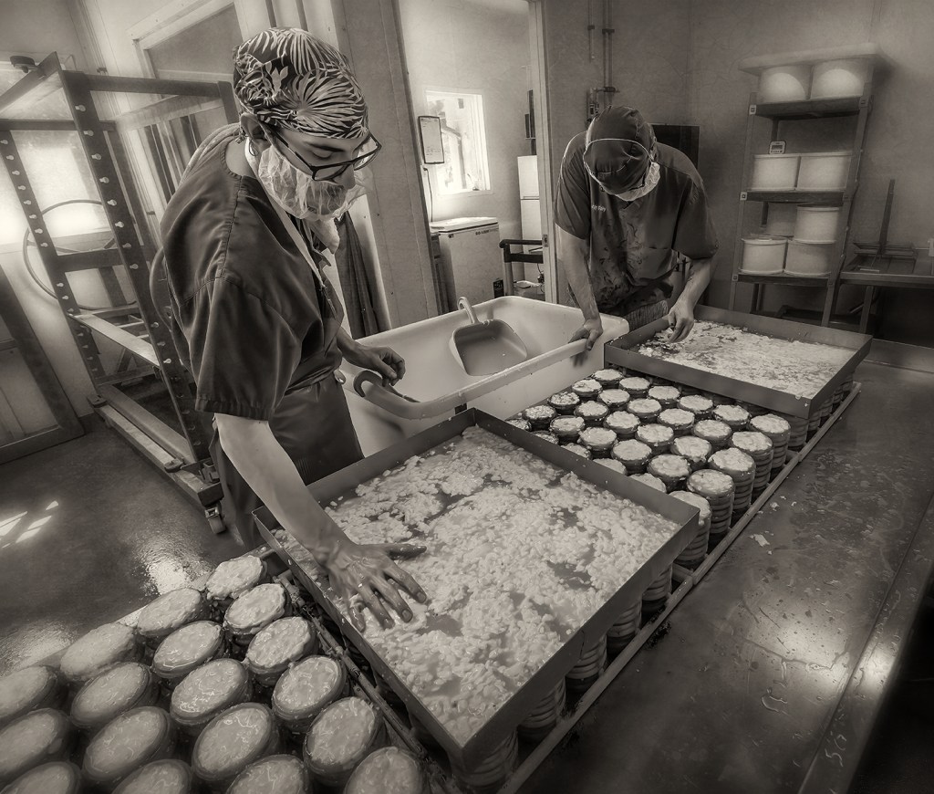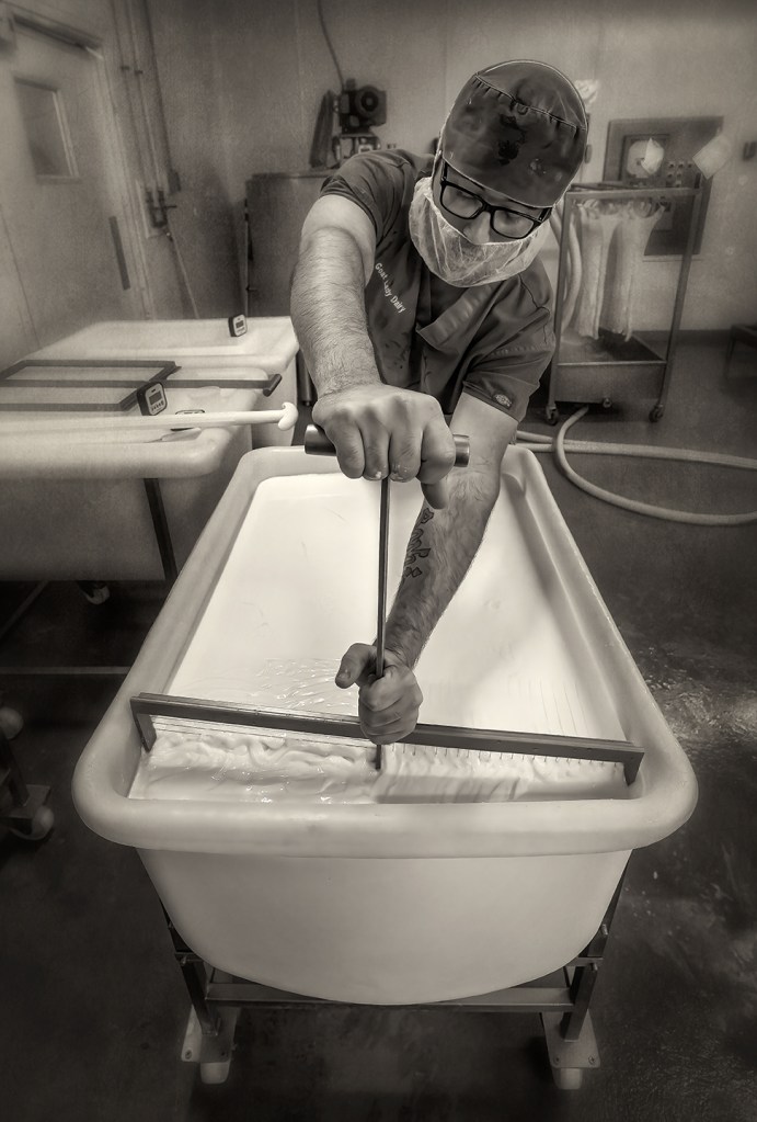 Producing Sandy Creek, an ash and mold ripened goat milk cheese at Goat Lady Dairy in Grays Chapel, North Carolina.