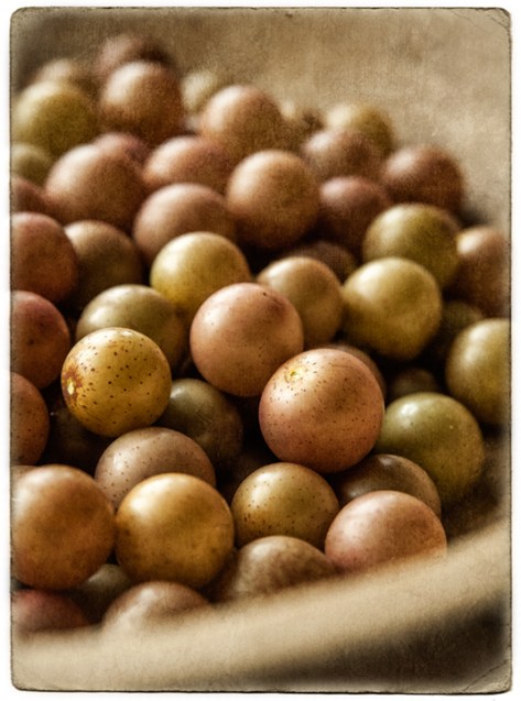 One of the great pleasures of growing up in the rural South during the early Fall is the scuppernong, or as we used to call them, “scupanines”. Wonderful as juice, wine or just for eating, these golden sweet baubles are members of the muscadine family. I picked a fresh bowl full from my Dad’s vines on our farm in Grays Chapel, North Carolina.