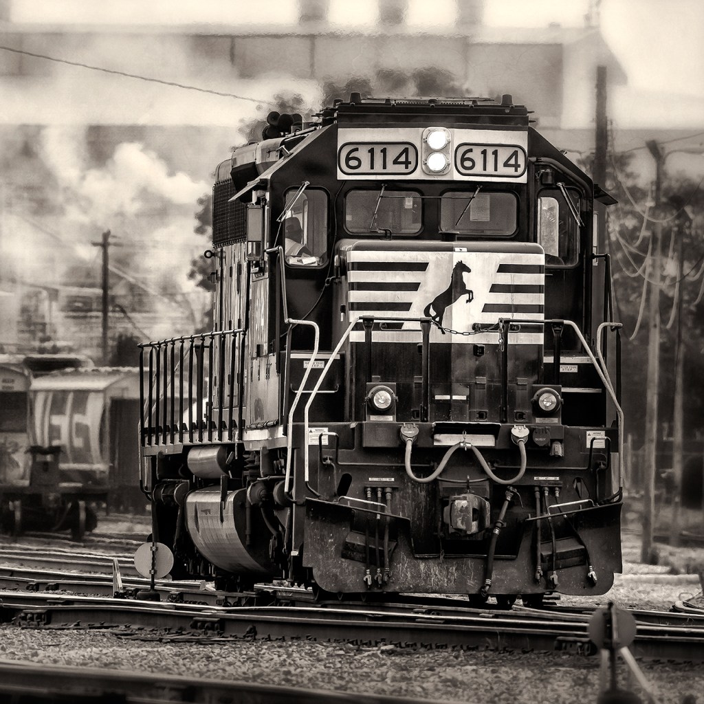 Norfolk Southern 7270 turns around at the Elm Street wye. Greensboro, North Carolina