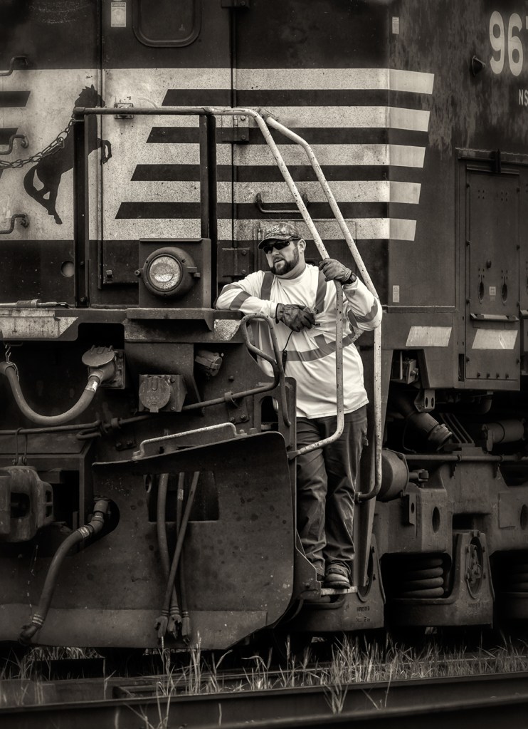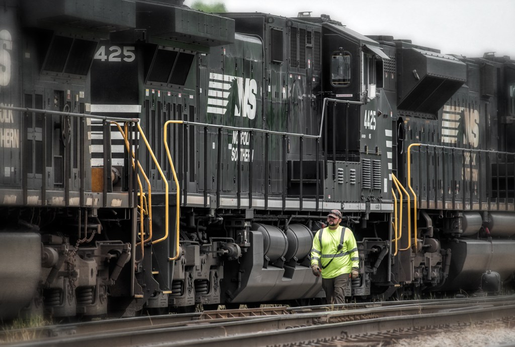 Crew change on a Norfolk Southern consist at the Pomona Yard in Greensboro, North Carolina. This train is lead by NS 8158 followed by two Canadian Pacific units.