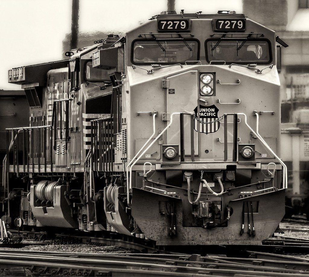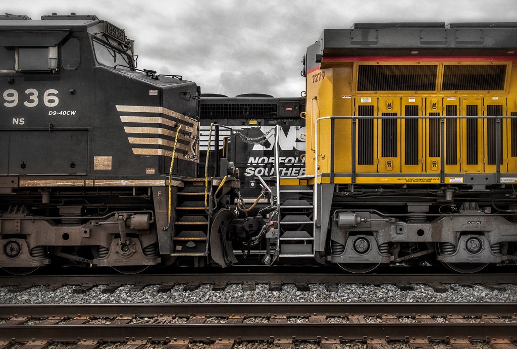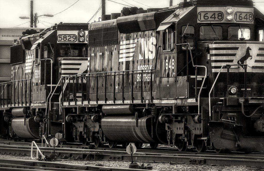 Union Pacific 5260 leads a Norfolk Southern freight consist out of Pomona Yard toward Elm Street crossing in Greensboro, North Carolina.