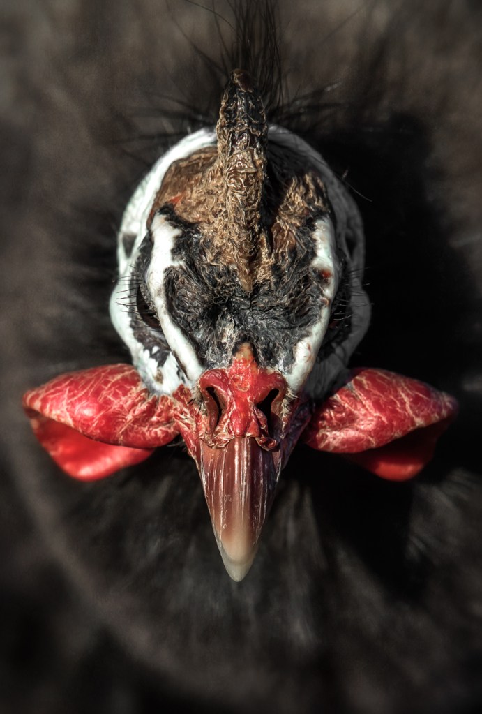 Our ancient male guinea fowl. Constant deck companion. Grays Chapel, North Carolina.