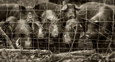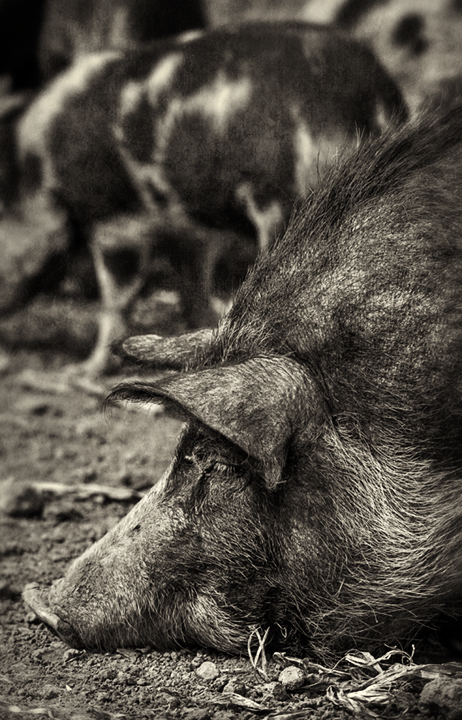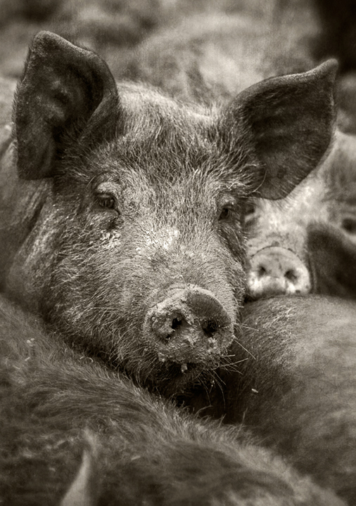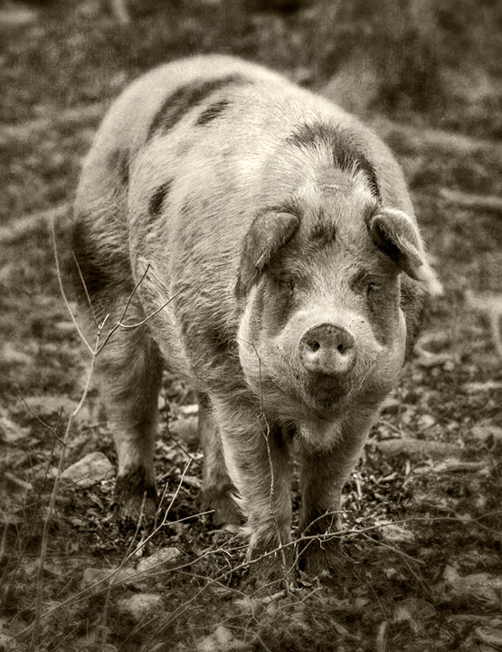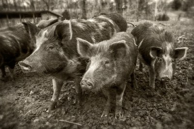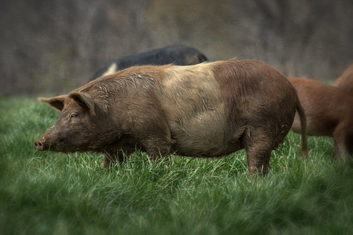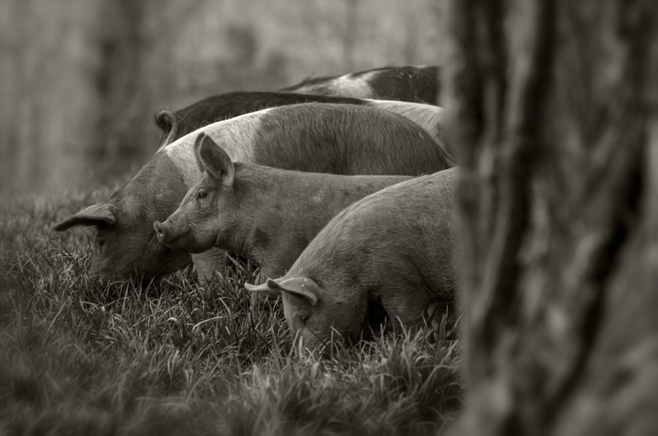 Allison Sturgill and sustainably raised hogs at Chapel Hill Creamery. Chapel Hill, North Carolina.