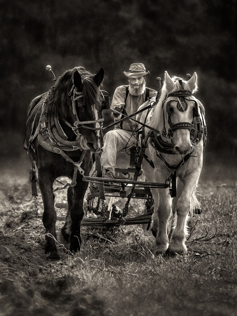 Leonard Bergey plows with his team at Twin Branch Farm near Chapel Hill in Orange County, North Carolina.