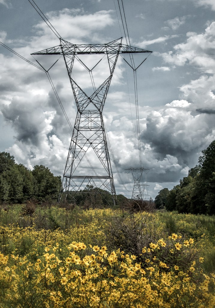 Power lines near Climax, North Carolina and the municipal water tower in Thomasville, North Carolina.