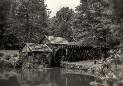 On the Parkway Landscape Mabrey Mill near Meadows of Dan, Virginia. Most photographed spot on the Blue Ridge Parkway. (Photograph copyright 2016 by Dan Routh)