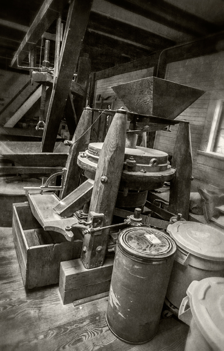 Jimmy Horney and Larry Curtis on a fall day at Julian Milling Company. Julian, North Carolina