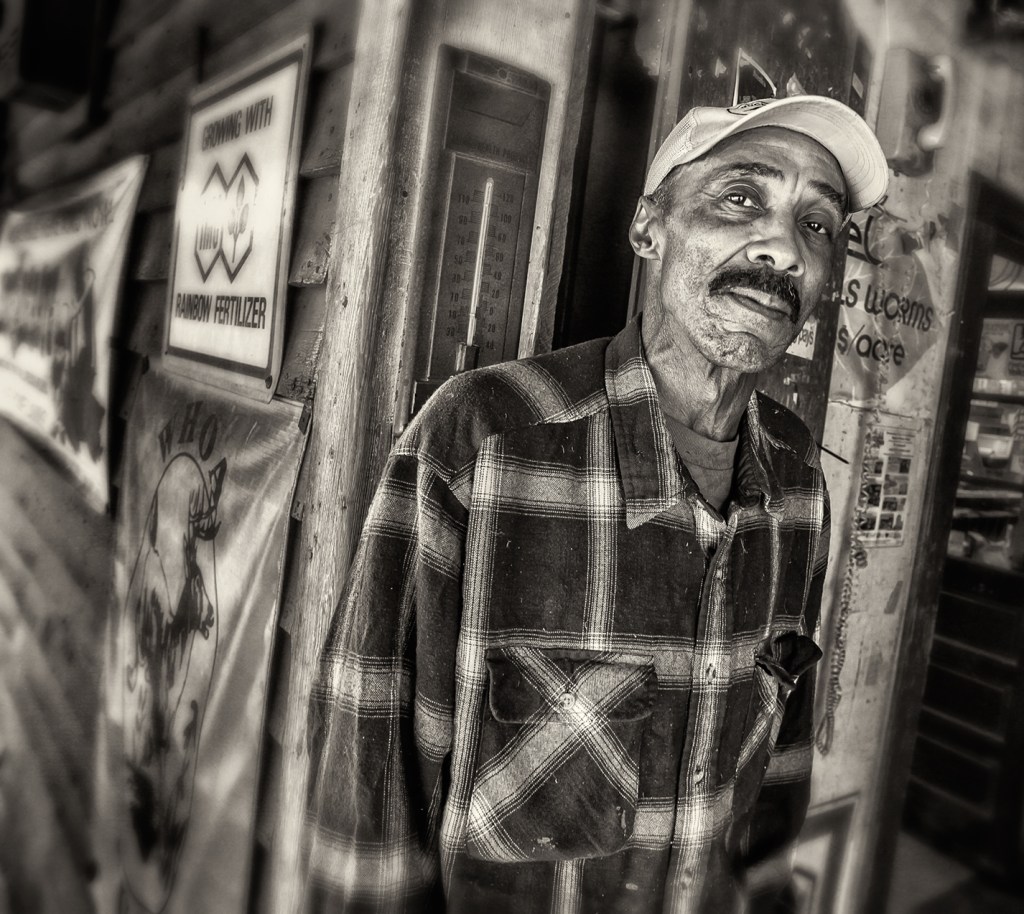 On the front porch at Julian Milling Company. Julian, North Carolina.