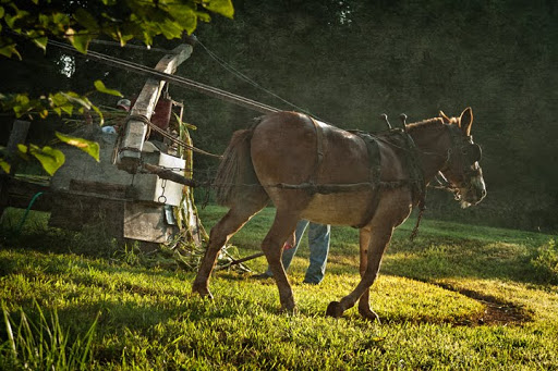 Neighbor Gary McMasters was making sorghum molasses this weekend with his mill in Grays Chapel, North Carolina. He was also breaking in his new 4 year old mule Pearl. She was pulling the mill for only the second time. While Gary had to be a little patient, Pearl figured things out pretty quickly and did an admirable job. Pearl takes over from Sam, who has gone into retirement in his twenties.