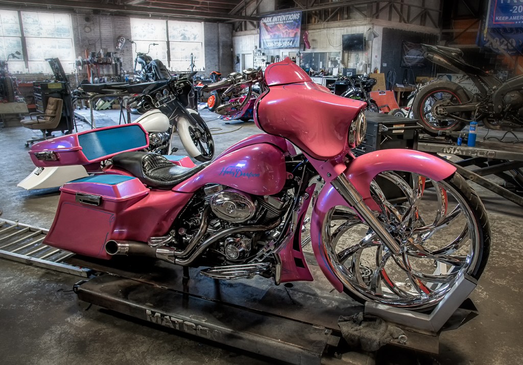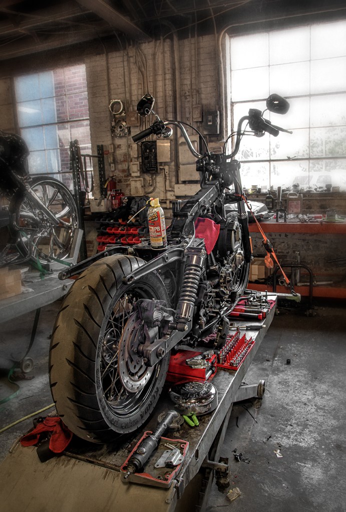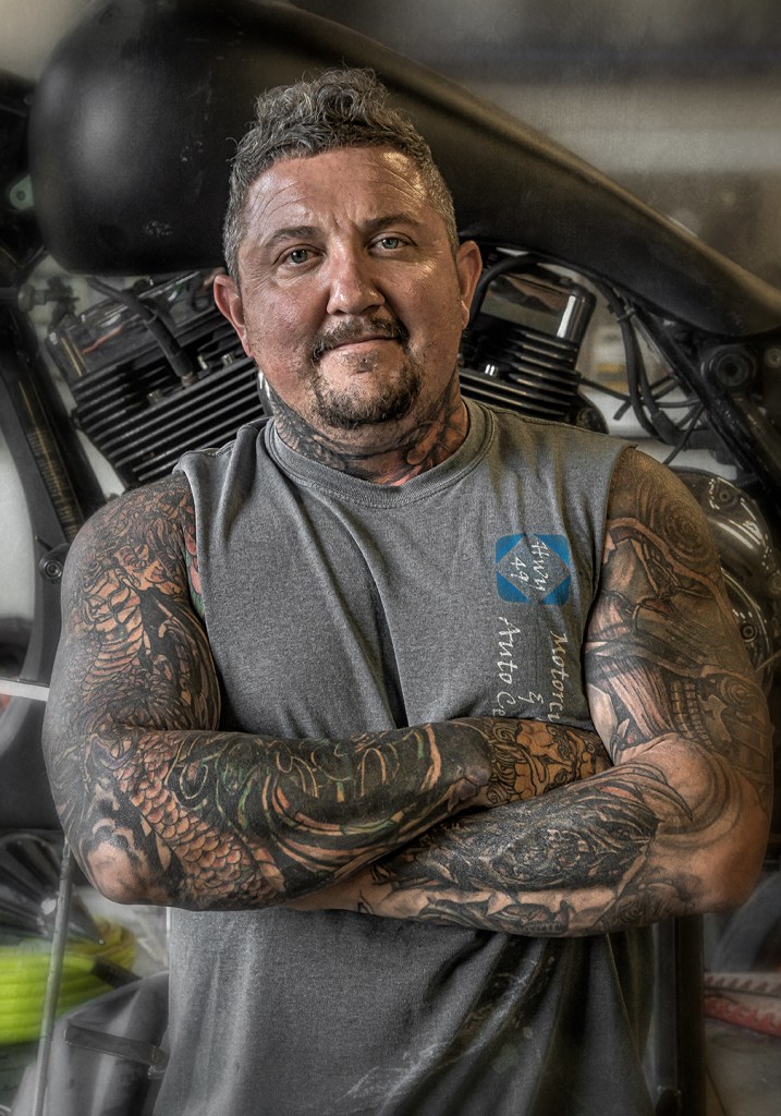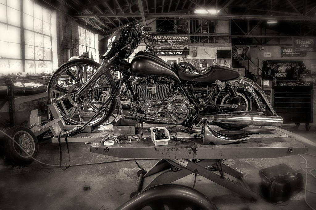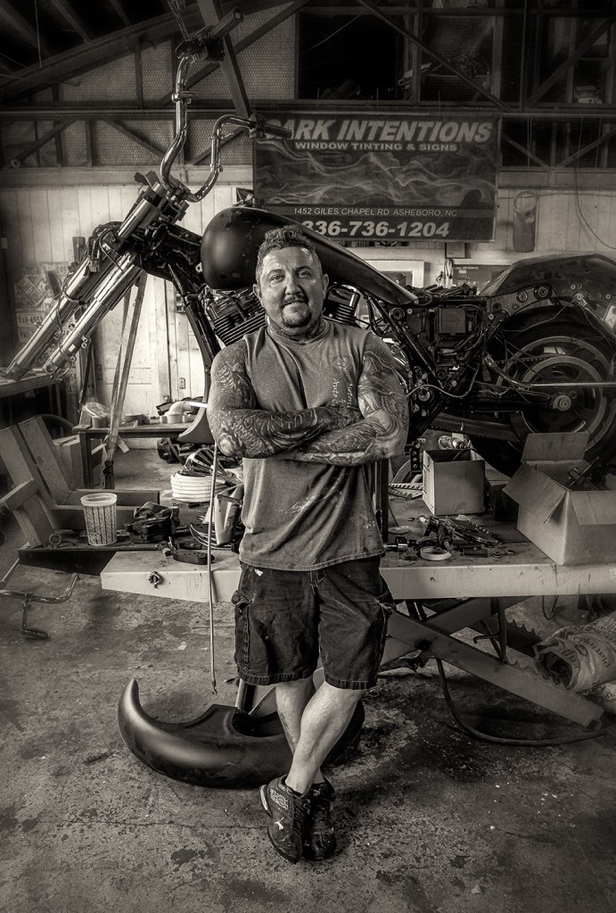 Brian Minnich owns and operates Highway 49 Motorcycle and Auto Center in Liberty, North Carolina and specializes in motorcycle customization. He creates works of art on wheels.