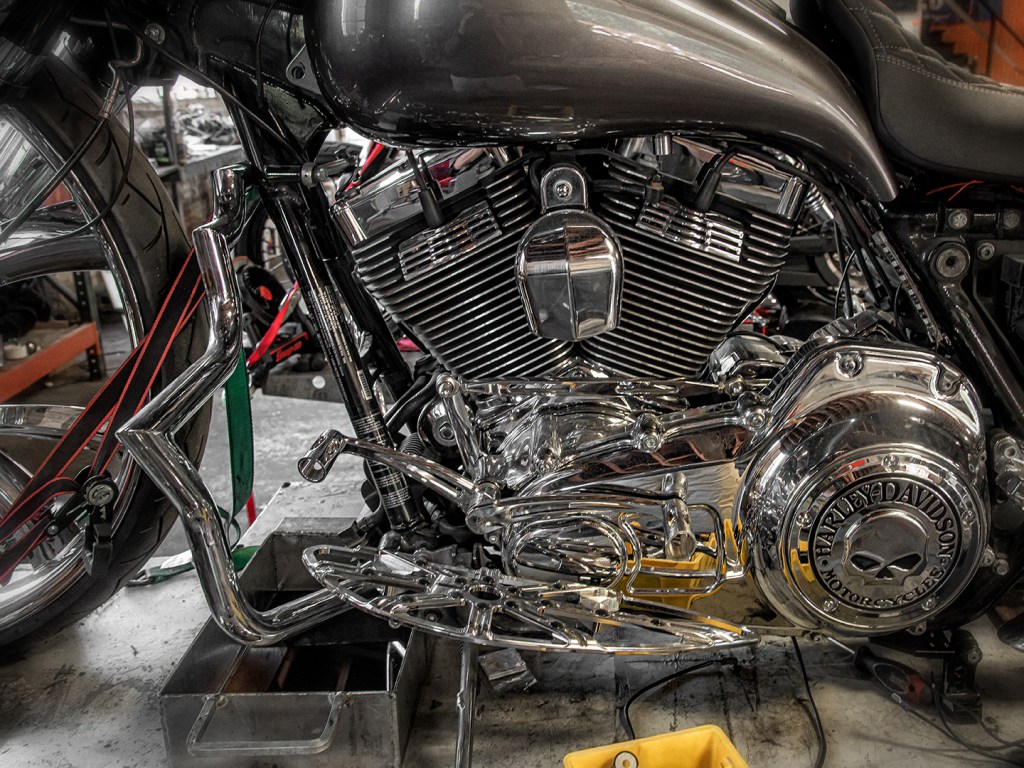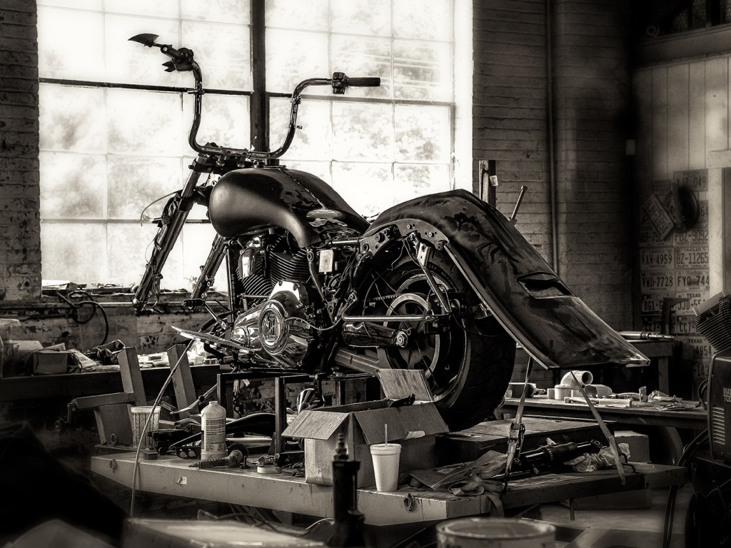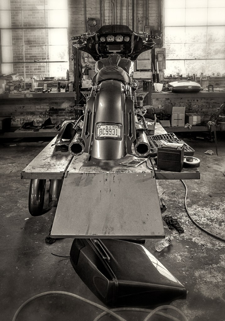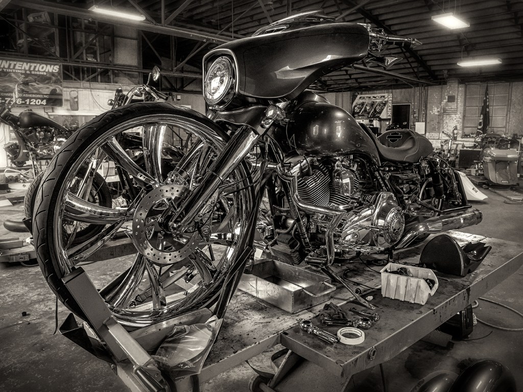Brian Minnich owns and operates Highway 49 Motorcycle and Auto Center in Liberty, North Carolina and specializes in motorcycle customization. He creates works of art on wheels.