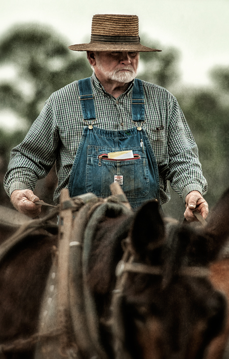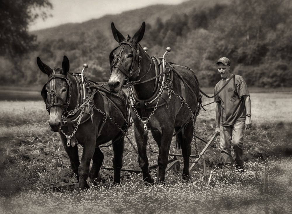 Wayne Hussey takes a break from his mules. Yesterday, near Seagrove, North Carolina.