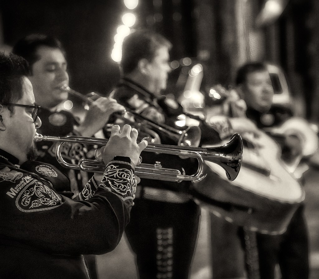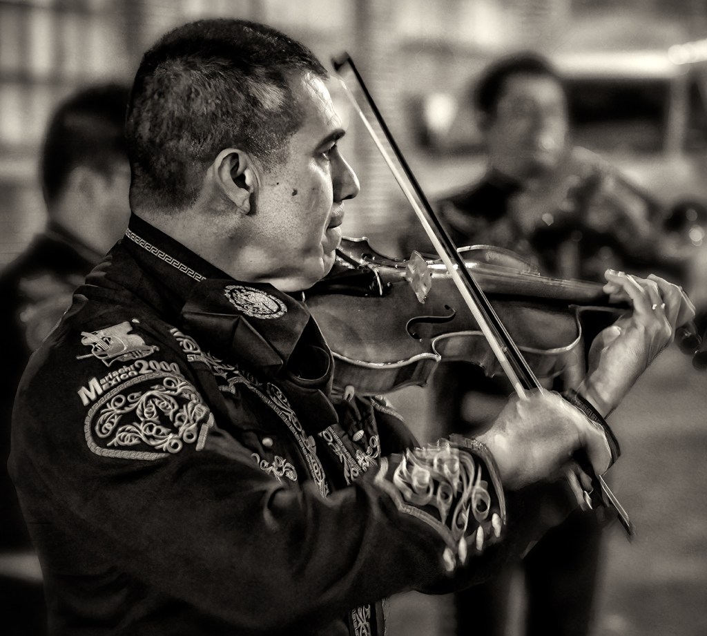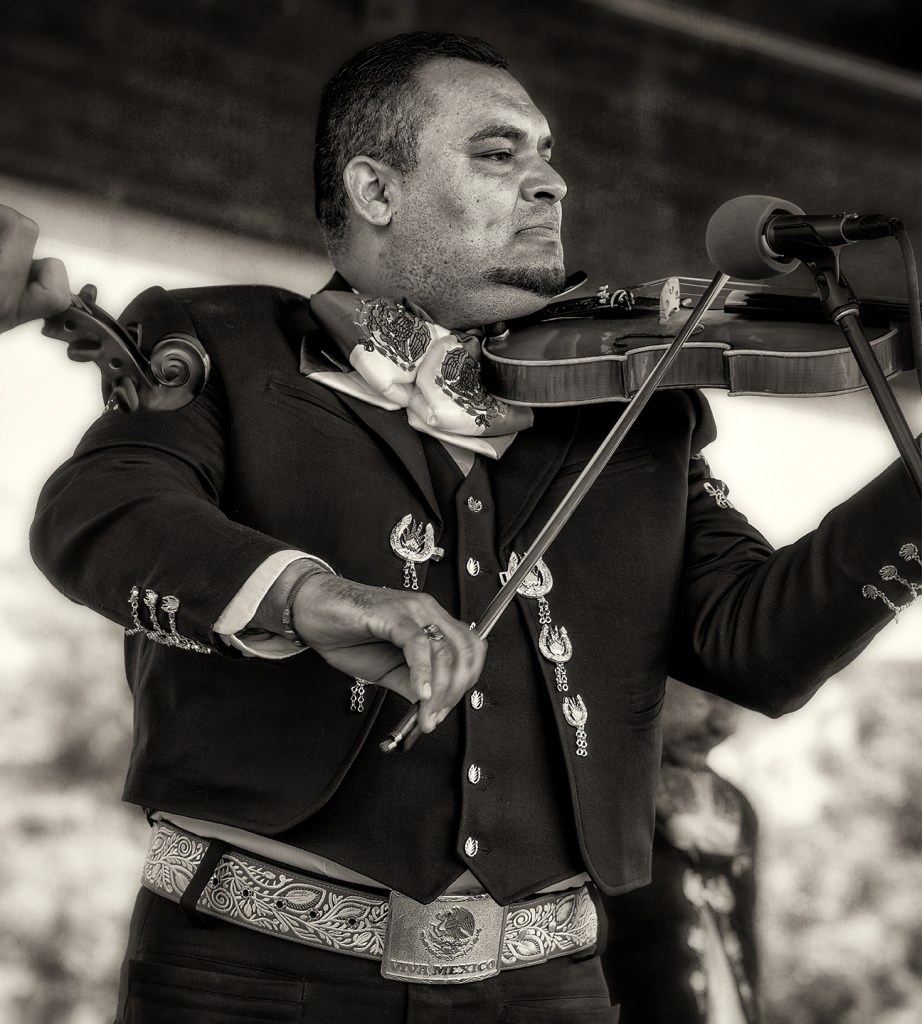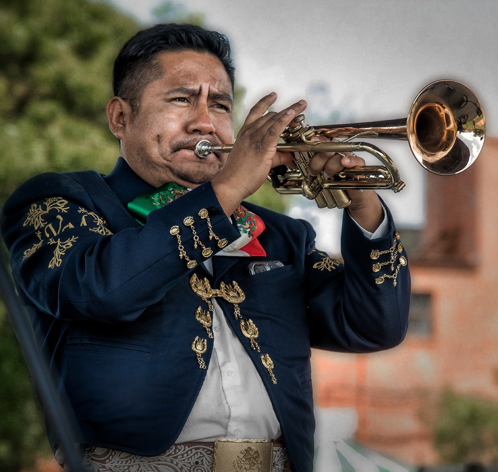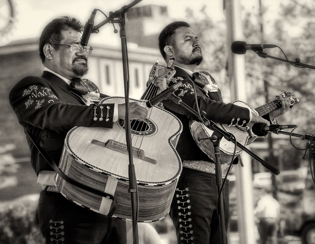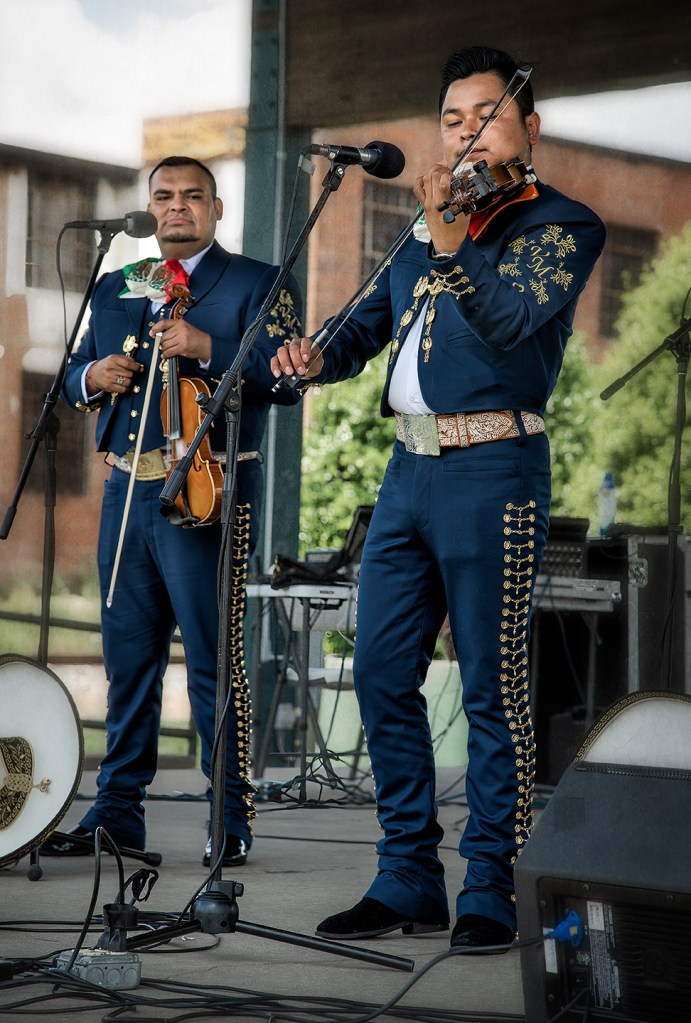 Mariachi Via Mexico NC performs in the square in Asheboro, North Carolina.