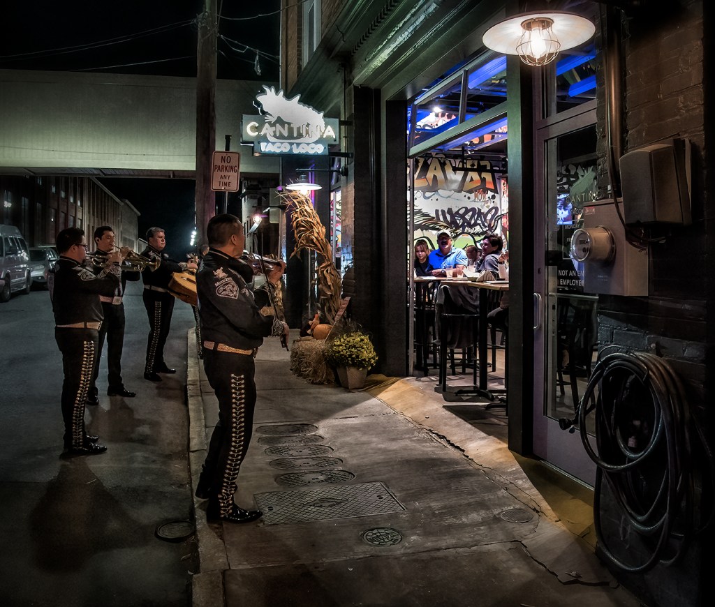 The sound of Mariachi music drifts down the street in Asheboro on a warm Thursday evening.