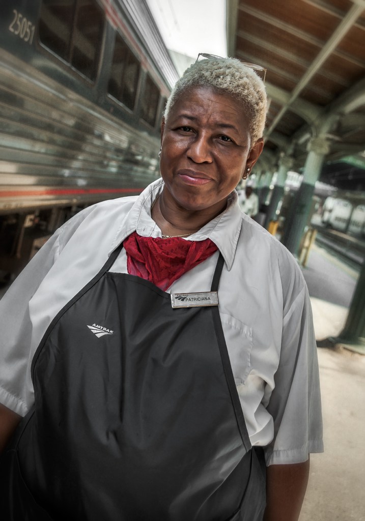 Patriciana, an Amtrak coach attendant on the Crescent which runs from New Orleans to New York, before the pandemic.