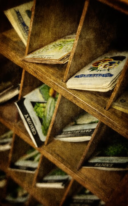 A walk by one of the local antique shops in Old Greensboro turned up these displays of old seed packs. Makes me wish Spring would hurry.