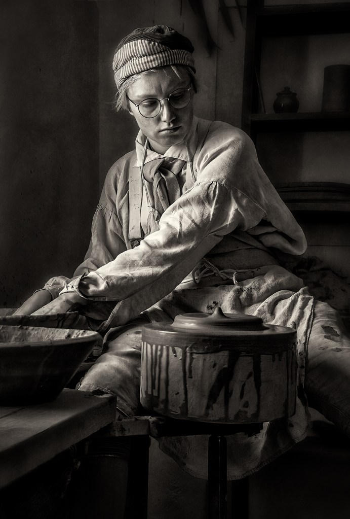Working at Single Brothers House. Old Salem Museum and Gardens. Winston Salem, North Carolina.