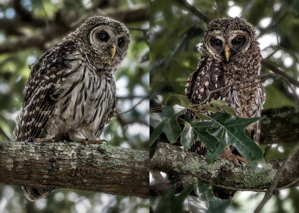 A female and a juvenile Barred Owl on my neighbor’s farm in Grays Chapel, North Carolina.