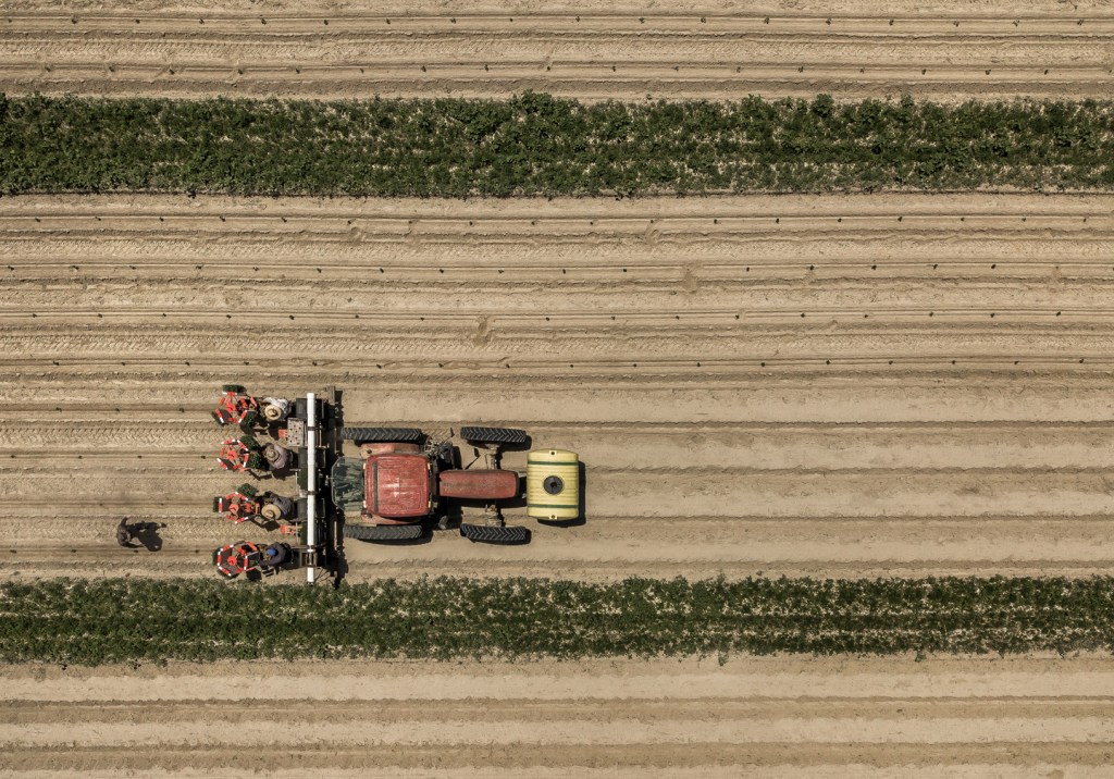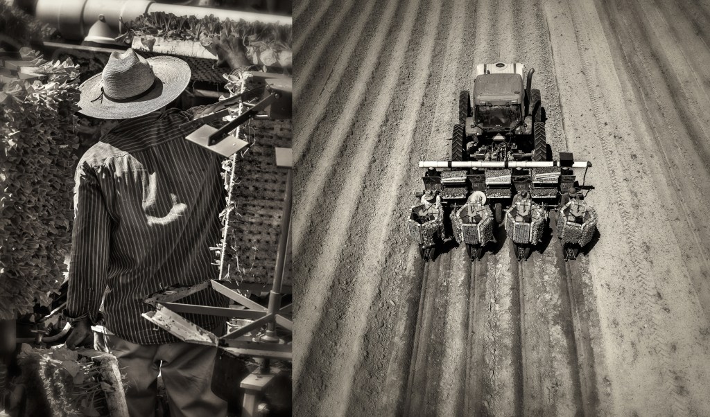 Planting organic tobacco. Whitaker Farms. Near Pleasant Garden, North Carolina.