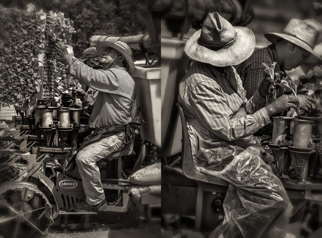 Planting tobacco. Whitaker Farms. Near Pleasant Garden, North Carolina.