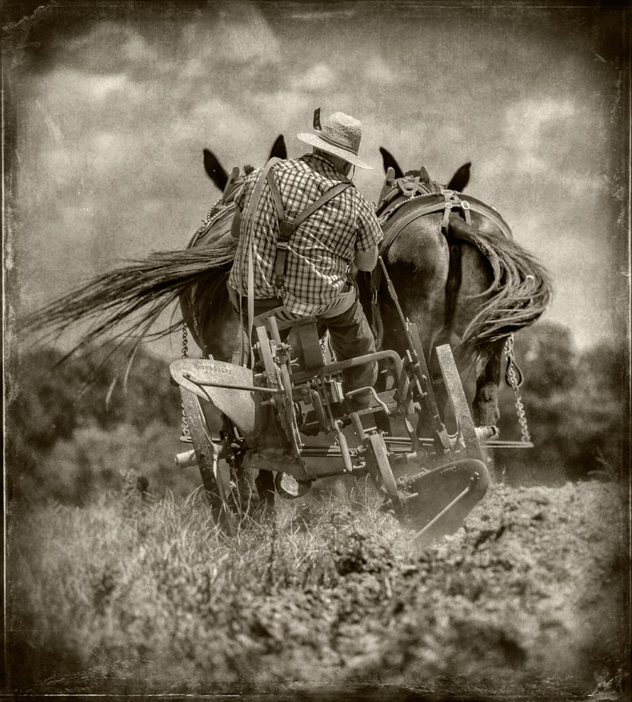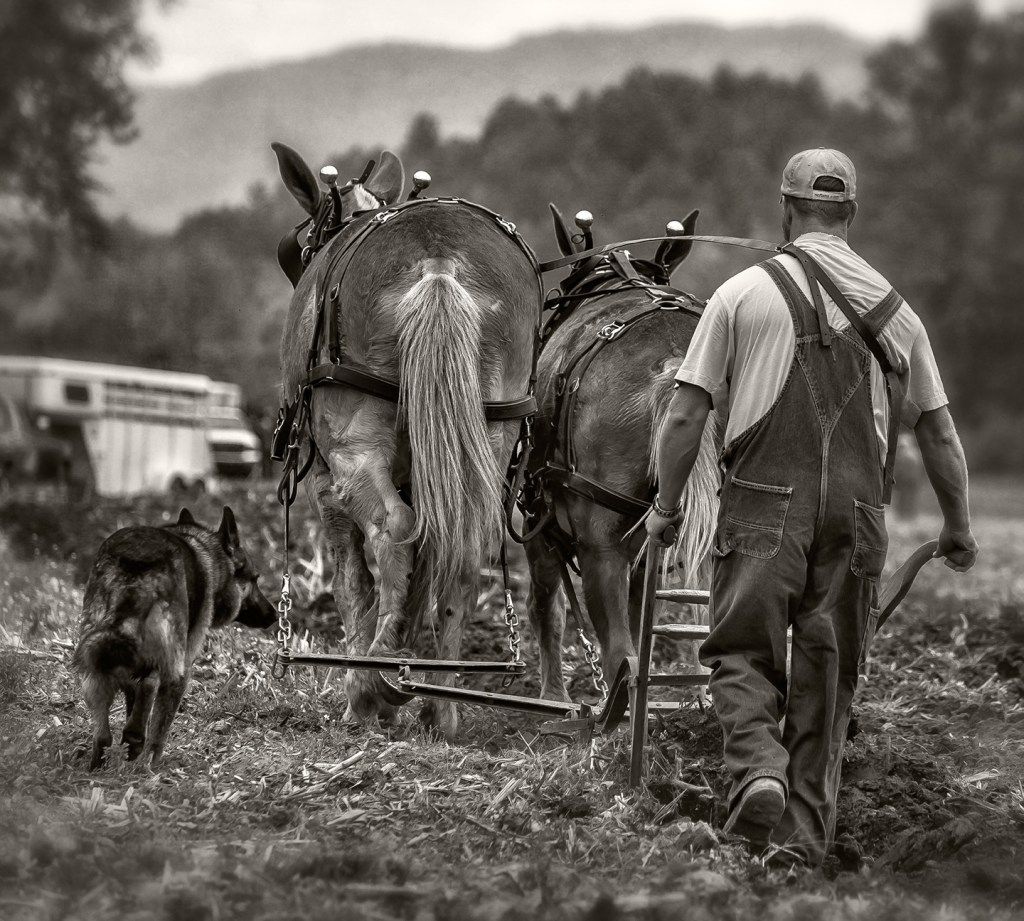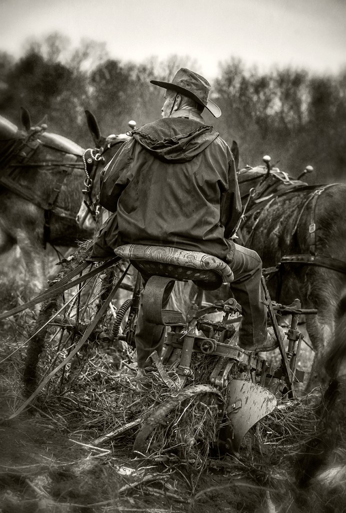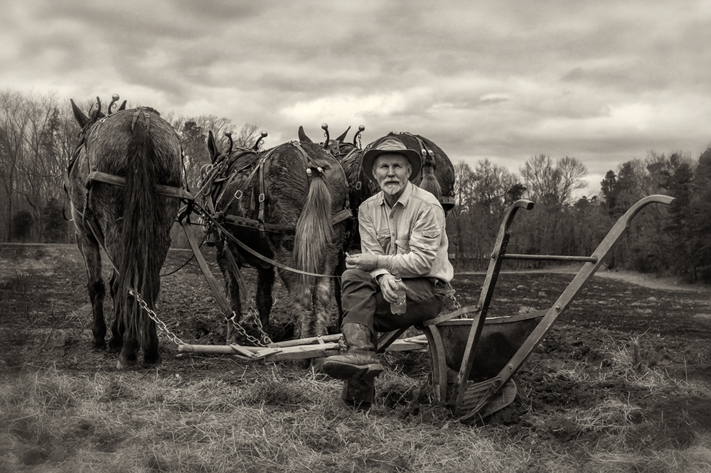 Wayne Hussey plows behind his team of mules in southern Randolph County, North Carolina.