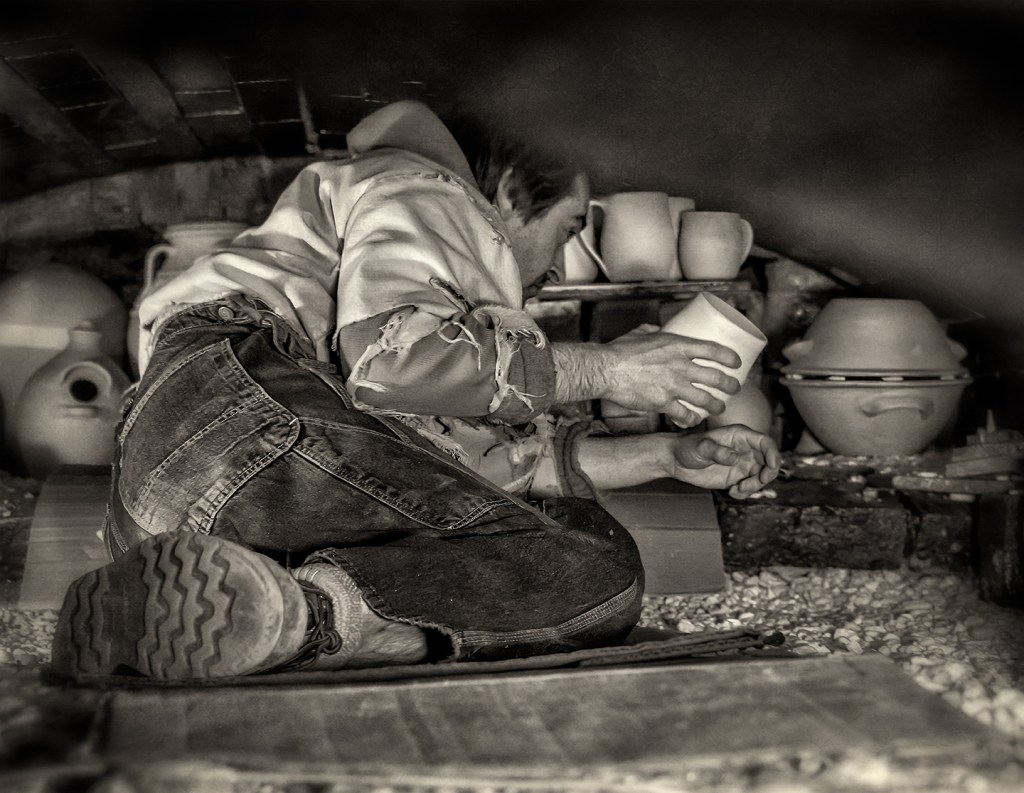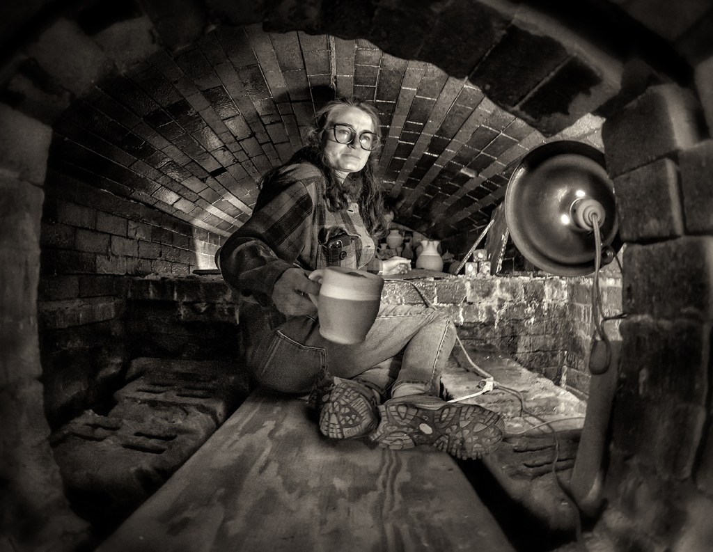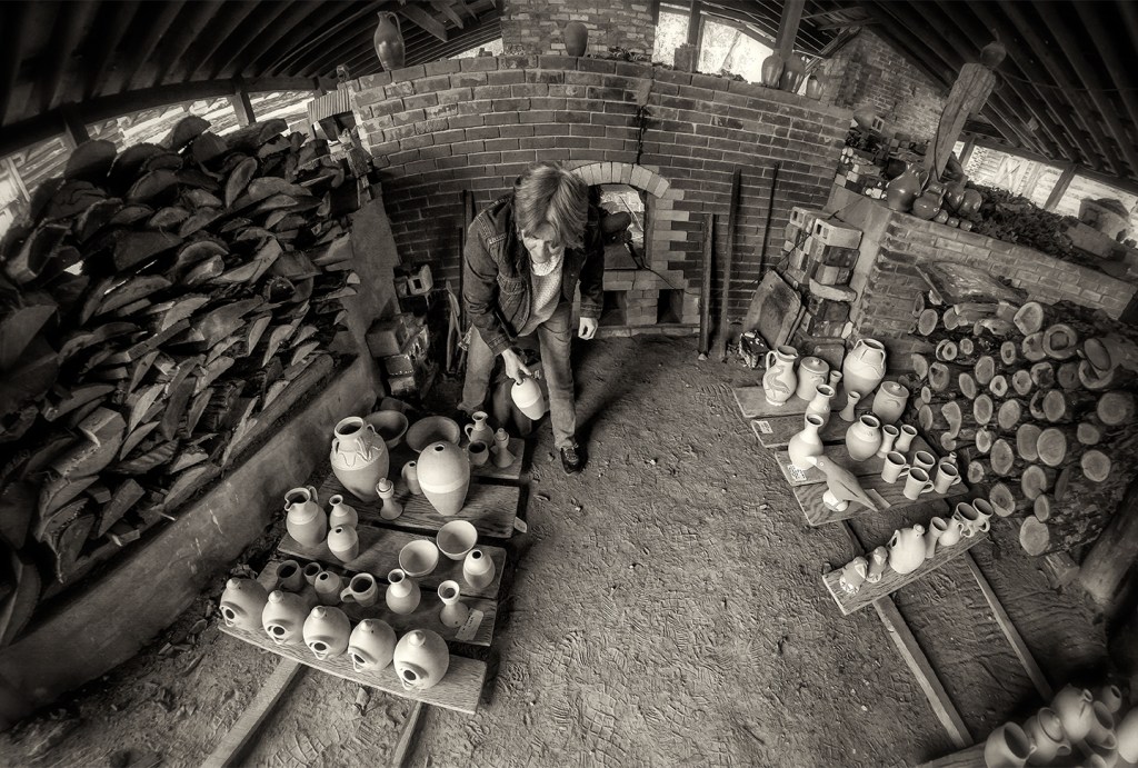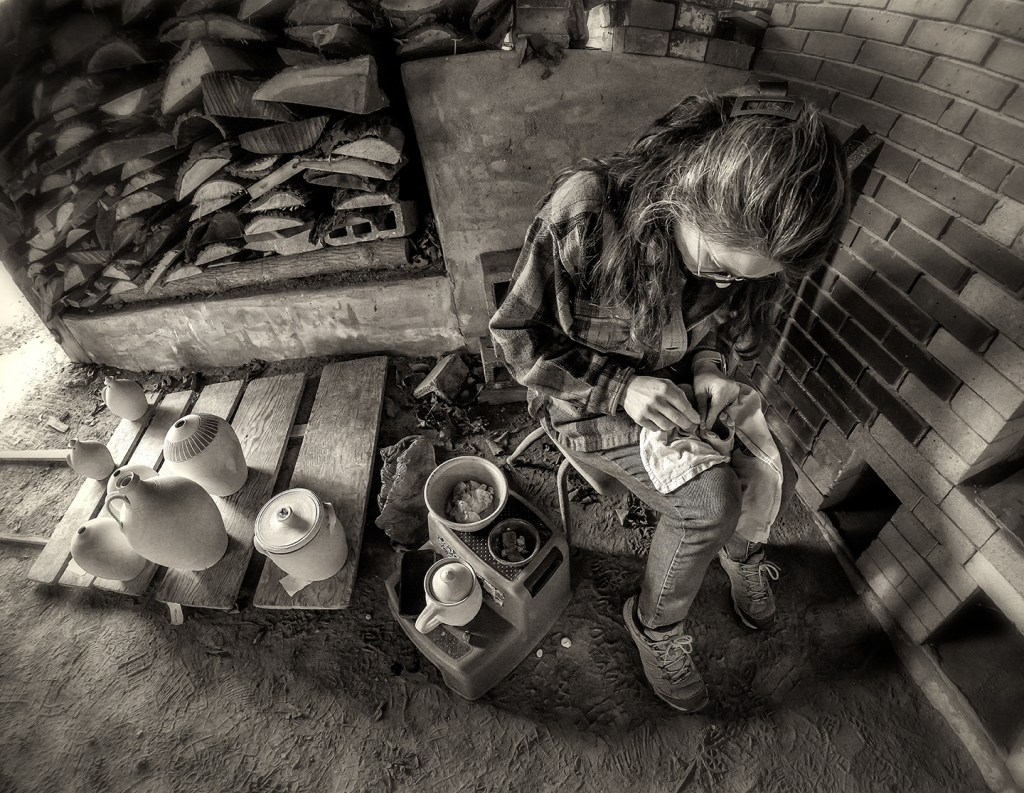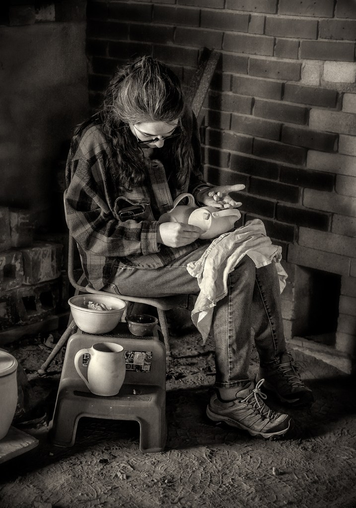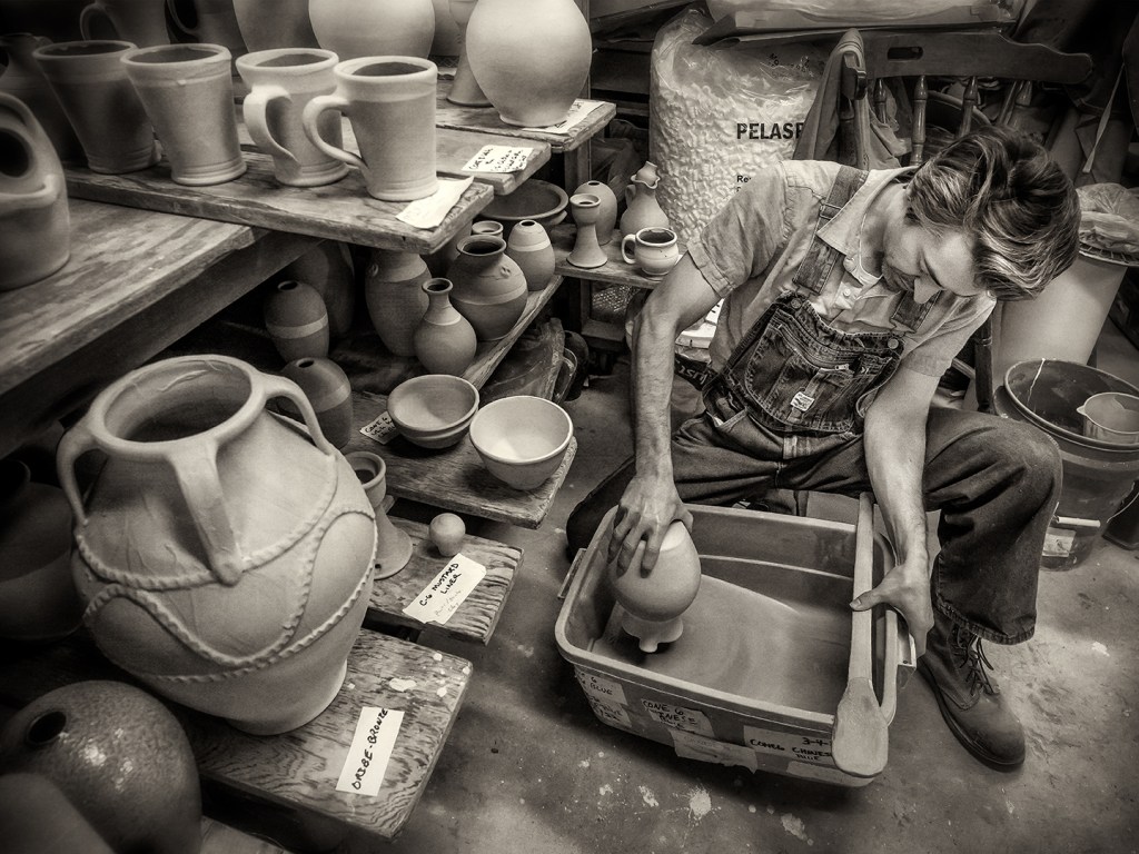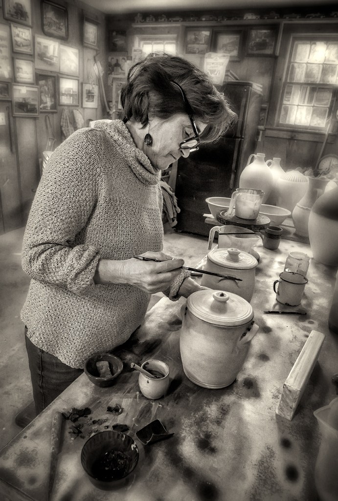 Pamela Owens of Jugtown Pottery works on a large pot in northern Moore County, North Carolina.