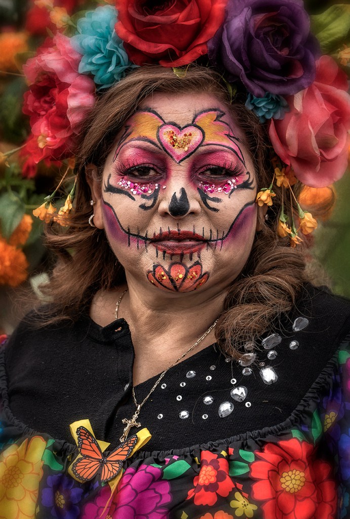 An attendee at the DÃa de los Muertos (Day of the Dead) celebration in Asheboro, North Carolina.