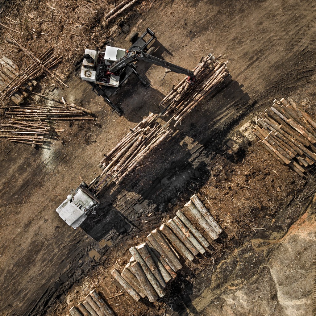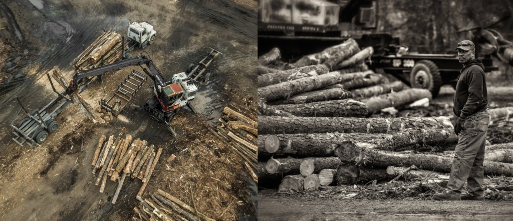 James Kenan, owner of Bernie’s Berries, sets up a log to saw at his sawmill on Groometown Rd in Greensboro, North Carolina.