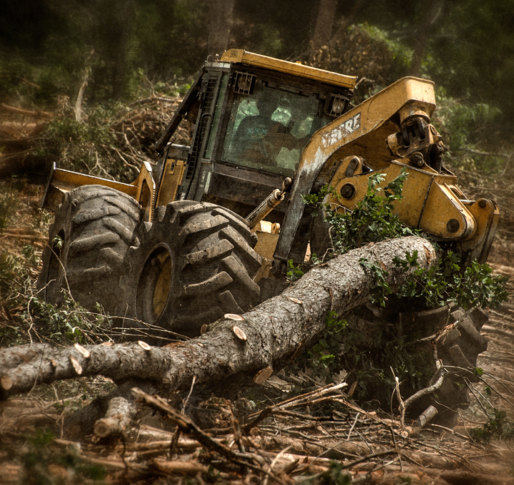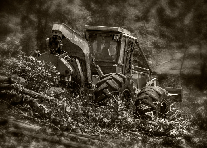 A skidder works moving logs on my cousin’s land in Grays Chapel, North Carolina.