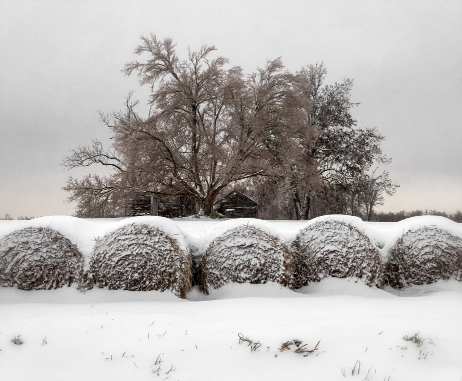 Farmstead and hay bales. Grays Chapel, North Carolina. I continue to return to this spot over and over. Each time a different magic appears.