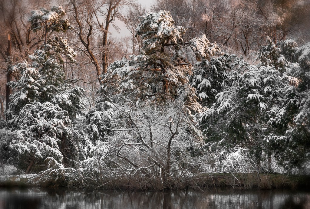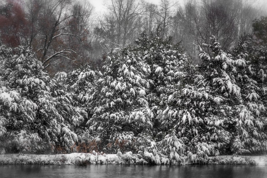 Snow near the pond. Grays Chapel, North Carolina.