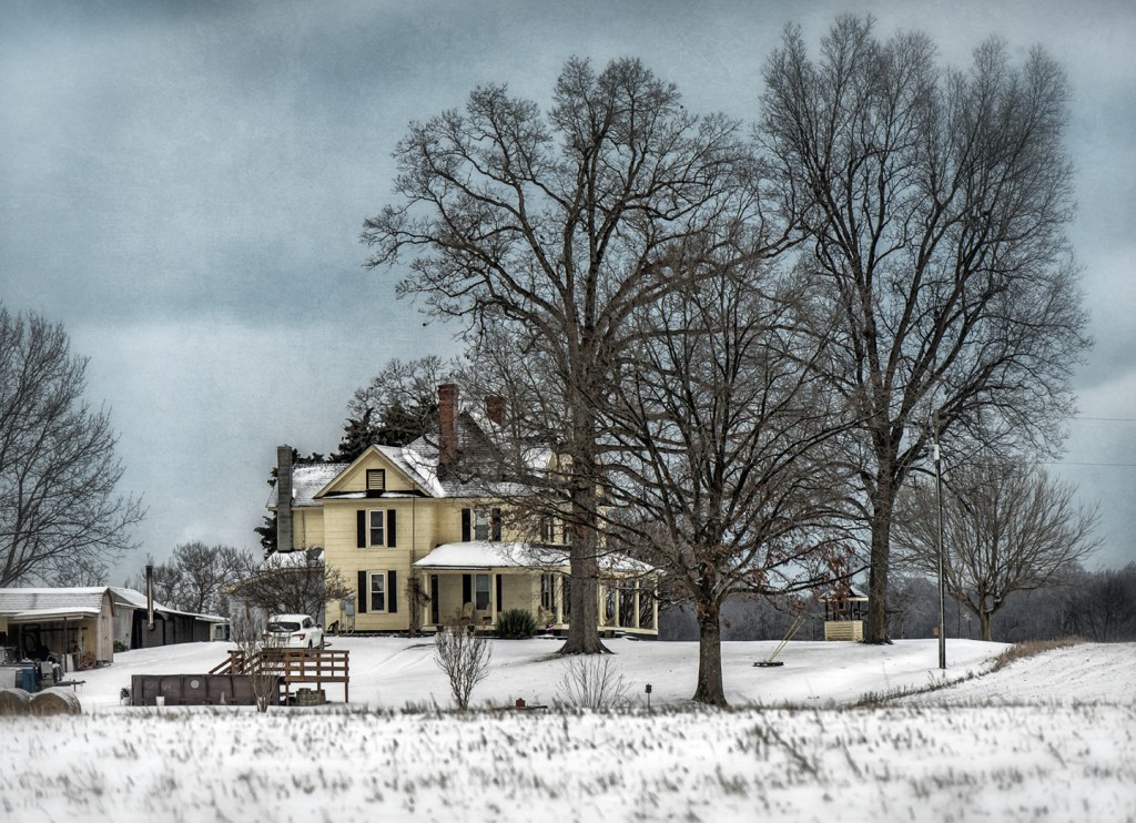 On a snowy day near Liberty, North Carolina.