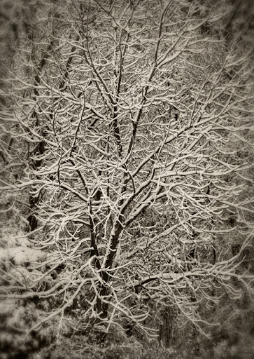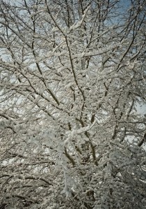 It was a wet snow, so the trees were covered. Below is a willow oak from my front yard. Below that is view of a neighbor’s cabin. It’s cold today and the weatherman says it’s supposed to drop to 12°F tonight (too cold!) but they are expecting it to be in the seventies by the weekend. Go figure.
