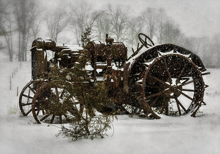 Yesterday we had a quite heavy snow in Greensboro, something fairly rare for us in March but not unheard of (it actually snowed here each of the first three Wednesdays of March in 1960). I’m not a really big fan of snow, and I am ready for spring to arrive, but I have to admit it was quite pretty. I went out and shot a few scenes near my home in Grays Chapel, south of Greensboro. Above is an old McCormick-Deering tractor beside a neighbor’s barn. Below is a view of our farm pond.