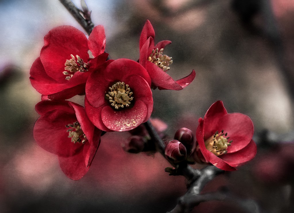 Japonica blossoms are starting to appear in Grays Chapel, North Carolina.