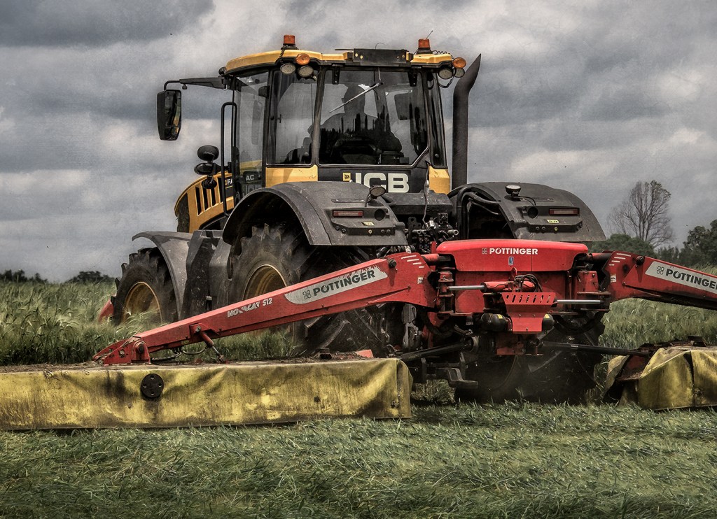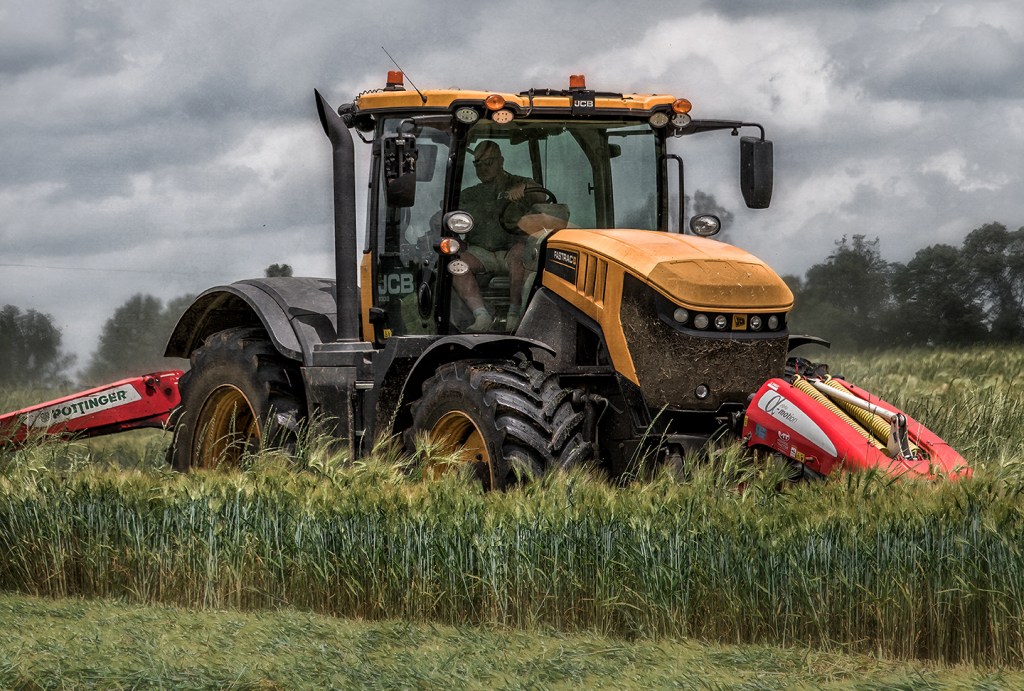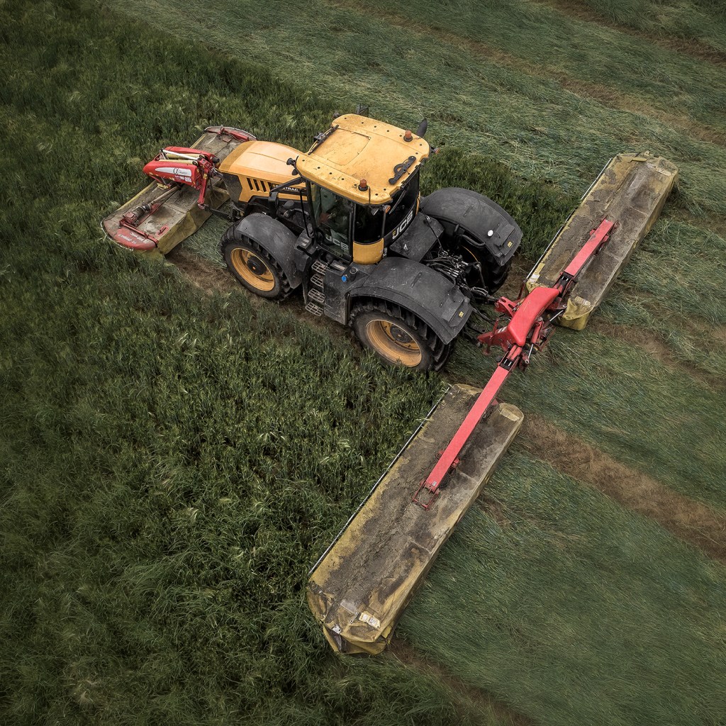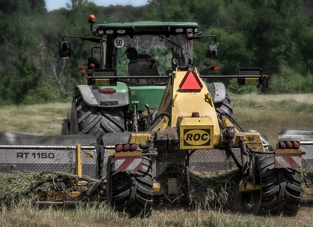 Mowing winter grain that will be chopped for silage at Koopman Dairy near Grays Chapel, North Carolina.