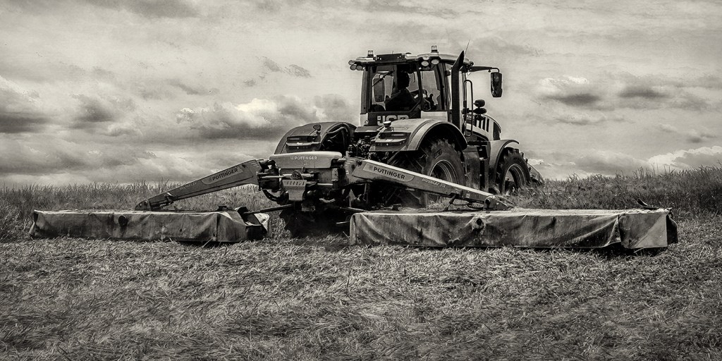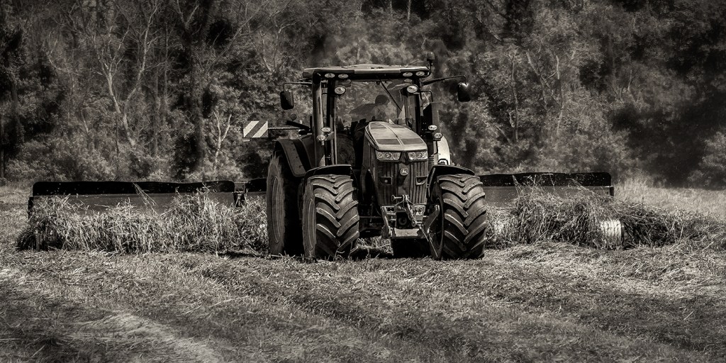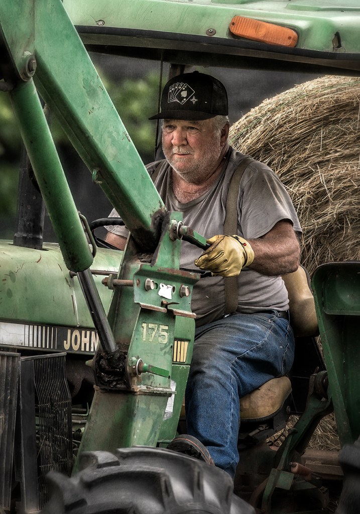 Neighbor Donald Lineberry teds hay across from my home in Grays Chapel, North Carolina.