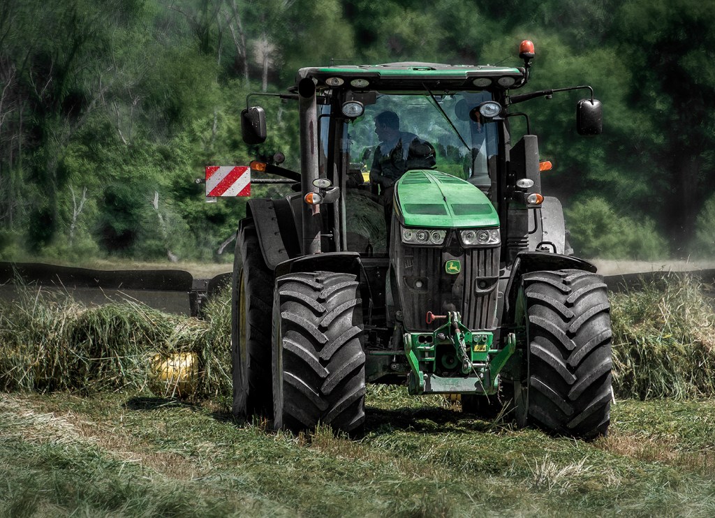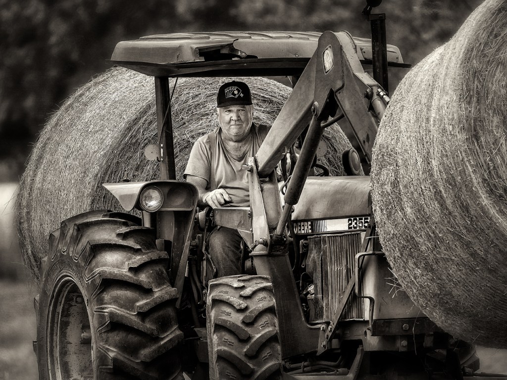 Loading round bales of hay out of the field in Grays Chapel, North Carolina.