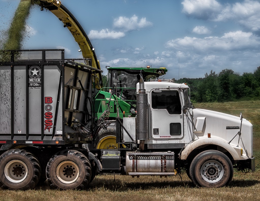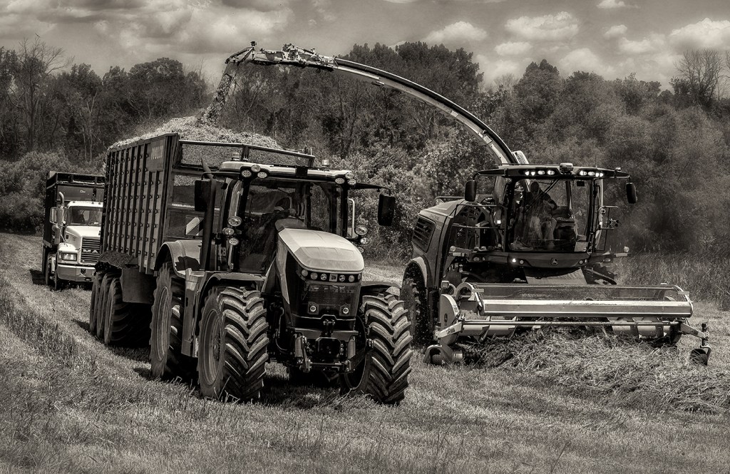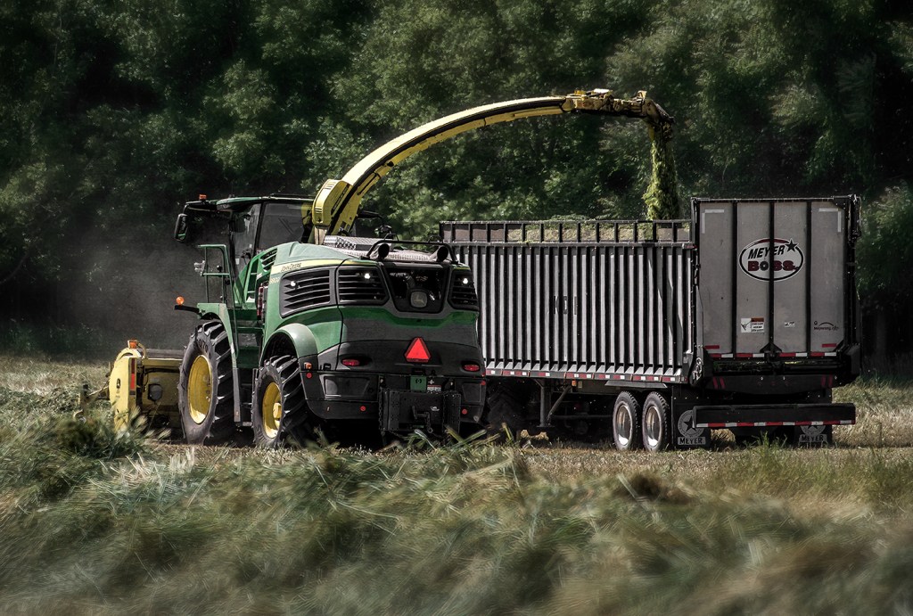 Chopping winter grain for silage at Koopman Dairy. Near Liberty, North Carolina.