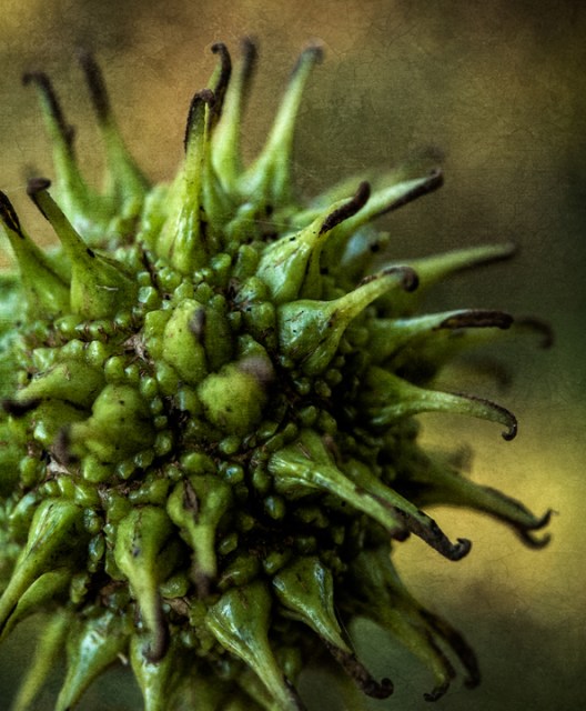 Gum Ball Detail Nature, Trees (Photograph copyright 2014 by Dan Routh) The gum tree at the pond. Grays Chapel, North Carolina.