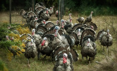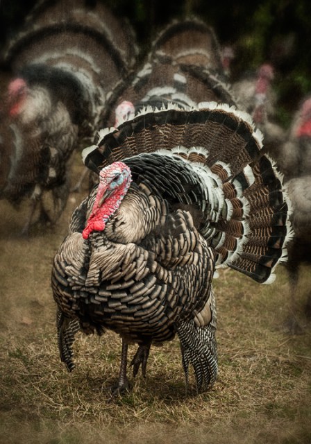 Heritage Breed Narragansett Turkeys free range at Dueling Owl Farm near Asheboro in southeastern Randolph County, North Carolina. For information on the farm and the breed of birds, go to: http://www.duelingowlfarm.com/default.aspx