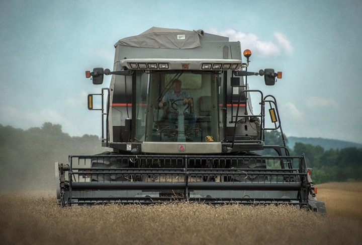 Combining wheat. Earl York, Jr. farm. Grays Chapel, North Carolina.